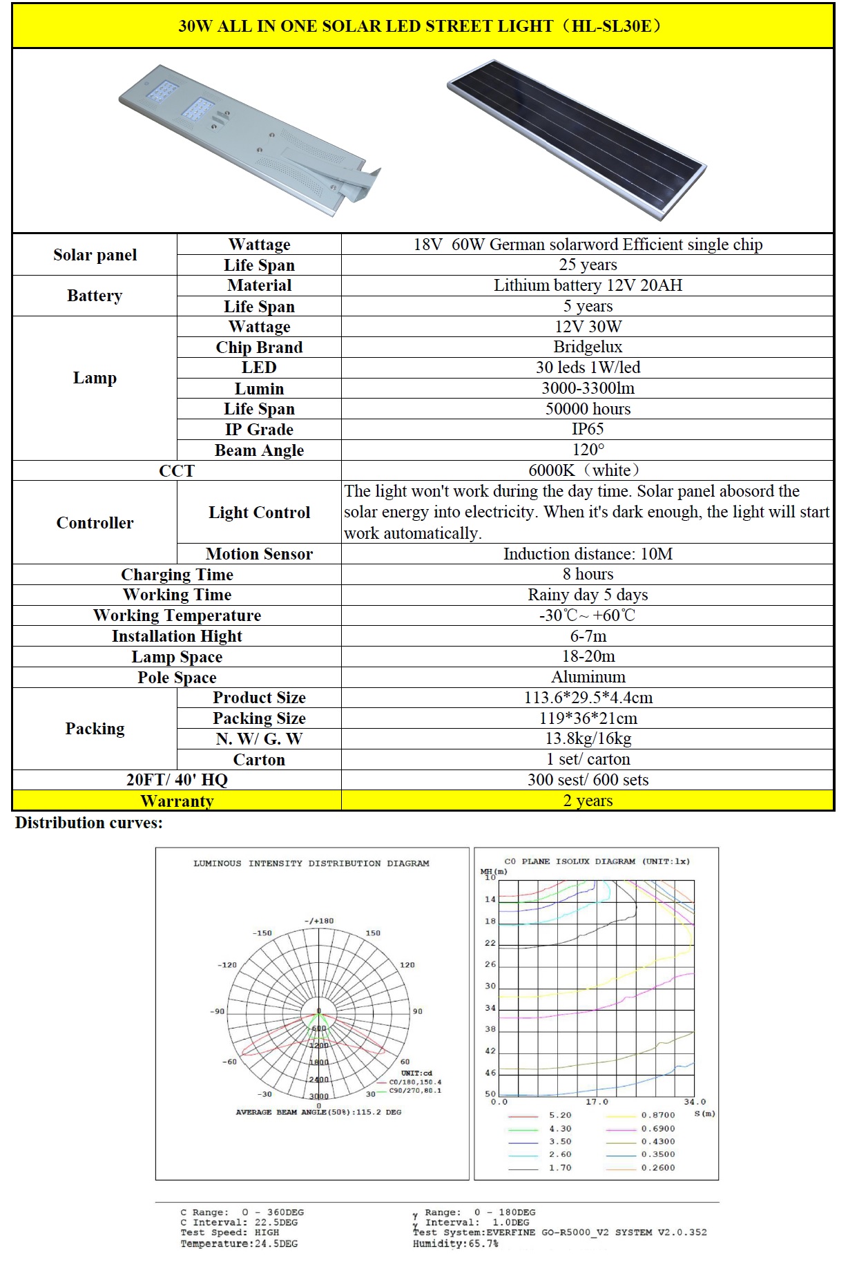 Luminaria Solar Led 30W Integrada